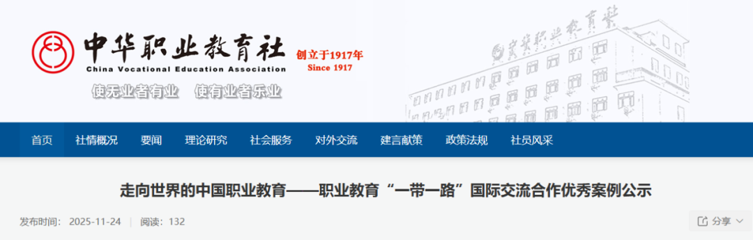 11月24日,中华职业教育社网站发布《走向世界的中国职业教育——职业教育“一带一路”国际交流合作优秀案例公示》,共有88所职校上榜。
