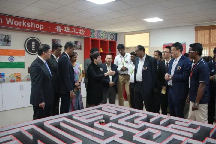 据悉,印度鲁班工坊是天津市在海外建立的第三家鲁班工坊,也是当前最大的鲁班工坊,由金奈理工学院提供近1200平方米建设空间,建设有四个国际化专业:新能源专业、数控设备应用与维护专业、工业机器人专业、机械设计三维建模专业。印度鲁班工坊是首个依托专业建成的,国际化校企合作的鲁班工坊,集教学、实训、培训、大赛及成果展示等于一体,实现国际化产教融合。