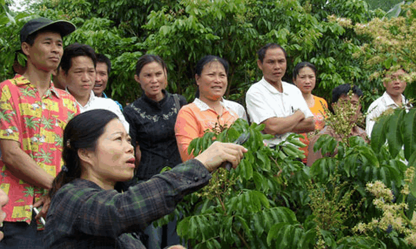 学校教师现场为“村官班”学生上龙眼生产技术课