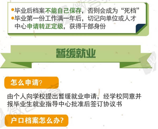 还有一个多月就要毕业啦,毕业生们知道有哪些流程吗?就业协议、劳动合同、报到证、学籍档案、人事档案、暂缓就业……下面这张图带大家提前了解毕业流程,我们速速转给身边需要的童鞋们吧!