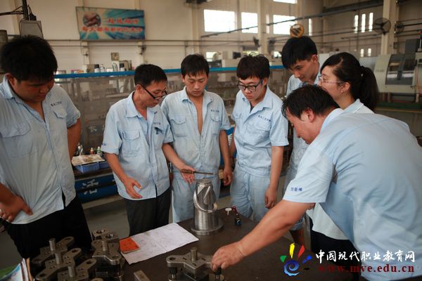用企业真实工作情境、管理模式下的产品加工全过程对学生进行生产性实习。学院在生产性实习的整体安排上,本着“产教结合、工学交替、技能本位、个性发展”的原则,每周安排3个半天的理论课,其余时间分组进车间生产实习。在对学生进行安全意识教育、综合技能培训和职业道德培养的基础上,让学生跟着企业的生产流程,参与生产的全过程,在规定的时间内完成若干个生产零件的加工,使学生在真实的企业生产环境中,锤炼专业技能、体味工作理念、感受生产气氛、领会企业文化。