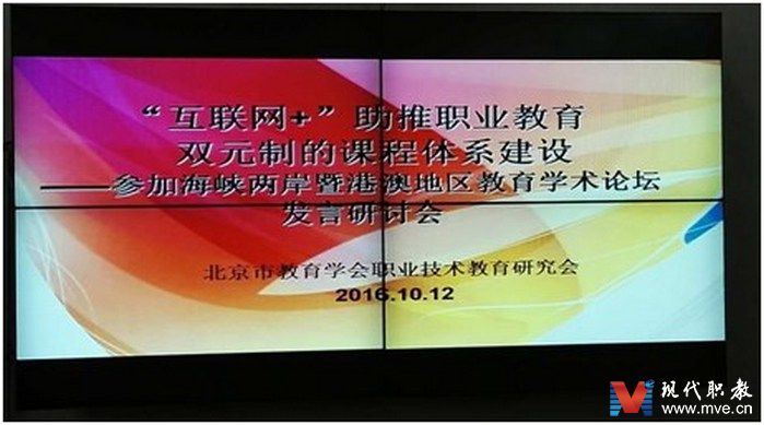 北京市教育学会职业技术教育研究会坚持“互联网+”助推职业教育双元制的课程体系建设,将在《海峡两岸暨港澳地区教育学术研讨会上》的论坛上做发言。2016年10月12日,职业技术教育研究会召开有职教专家和相关合作企业领导参加的专题会议,对在《海峡两岸暨港澳地区教育学术研讨会上》的论坛发言内容进行了研讨。在会长赵爱芹的主持下,大家学习了习近平总书记的重要讲话,赵爱芹会长提出:北京市职业技术教育研究会坚持“互联网+”助推职业教育双元制的课程体系建设。通过校企融通、产教结合、教育教学、社会实践等创建了“互联网+”助推职业教育双元制课程体系建设的“八个融合”的理念。