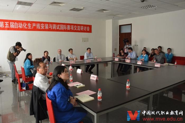 2016年5月8日上午10点,学校在A-105会议室举行2016职业教育活动周暨全国职业技能大赛第五届自动化生产线安装与调试国际赛项交流研讨会。党委副书记、校长张兴会,副校长徐琤颖,西班牙专家纳丘先生、德国专家贝克先生、西班牙专家巴福勒先生,自动化生产线安装与调试国际赛项老挝队和印尼队的领队出席了会议,学校教务处、国际交流处中层及工作人员参加了会议。徐琤颖副校长主持了会议。