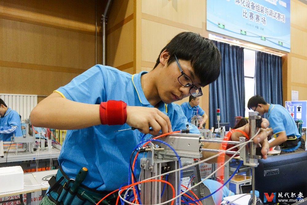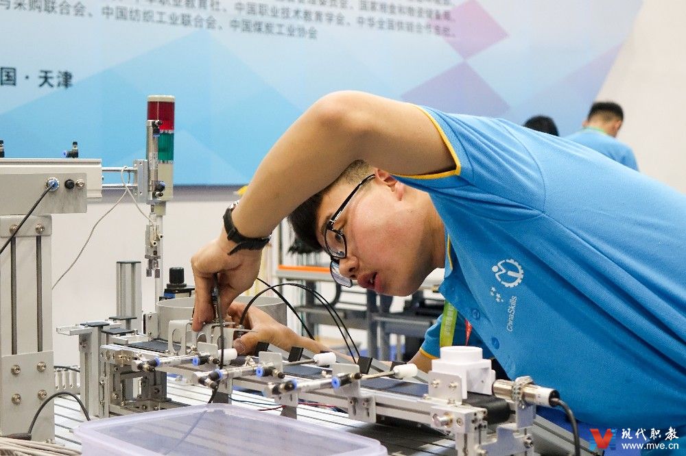 天职网讯(摄影 靖鑫)5月6日上午,2018年全国职业院校技能大赛首个开赛项目——中职组机电一体化设备组装与调试赛项在天津举办。该赛项由教育部等部门主办,天津市教育委员会承办,全国机械职业教育教学指导委员会及天津机电职业技术学院协办。共有来自全国各省、市、自治区的93支代表队和来自泰国、坦桑尼亚、吉尔吉斯斯坦等国的6支国际队的近200名选手参加比赛。