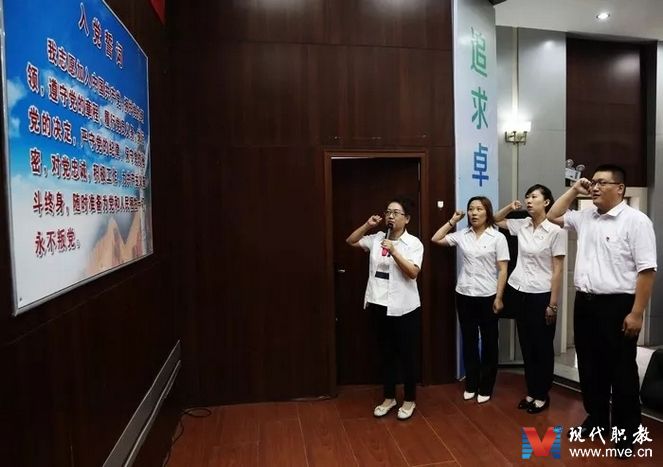 会上,贾云秋副校长带领魏玉梅、王宇恩、刘晓洁3名新党员进行入党宣誓,所有老党员重温入党誓词。优秀共产党员薛志华、闫嘉威分别做先进事迹报告。他们立足平凡岗位,为党和人民的教育事业无私奉献、甘为人梯的精神感动了全场同志,大家用热烈的掌声向他们表达了崇高的敬意。