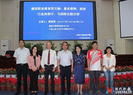 9月3日下午,德国不来梅市雅各布大学中国全球化研究中心研究员莫悉明(Armin Christian Muller)博士在甘肃工业职业技术学院图书馆报告厅开展讲座,讲座由旅游学院院长何瑛教授主持,甘肃工业职业技术学院部分教师及导游专业、酒店管理专业全体学生参加。此次讲座分为三项议程,第一项为莫悉明博士从德国双元制的基本原则、旅游行业为例开展讲座,从国际比较分析德国“双元制”职业教育教学模式在校企合作、产教融合、现代学徒制改革等方面进行系统地讲述,并将德国先进的职业教育理念同大家分享。第二项议程为现场提问作答环节,现场教师及学生将自己心中对职业教育的疑惑在会上提出,莫博士就存在的问题通过自己的见解予以一一解答。第三项议程副校长鲁挑建为莫博士颁发成为甘肃工业职业技术学院客座教授及中国科协“海智计划”甘肃基地甘肃工业职业技术学院工作站特邀专家聘书。最后,何院长做了总结发言,强调了“企业+教育”才是现代职业教育真正的内涵。职业教育其本质就是就业教育,是一种重实践,以能力为本,促进学生未来就业、竞争、发展的一种教育。