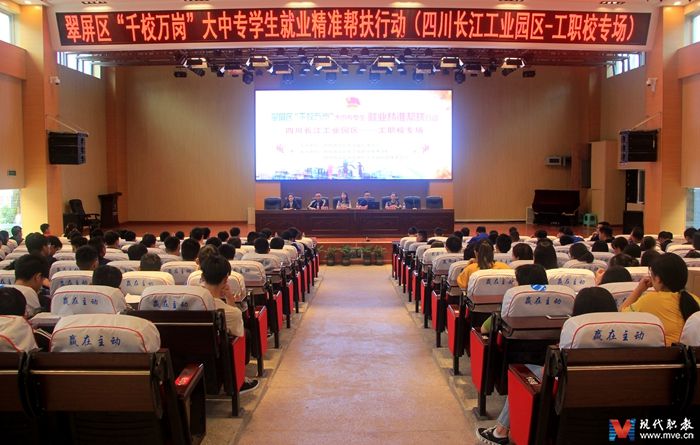 MVE网四川讯(通讯员 摄影 刘道修)共青团翠屏区委开展“千校万岗”大中专学生就业精准帮扶行动今天在宜宾市工职校举行。团区委青少年事业部部长吕闵、长江工业园区党群工作部部长胡泽宁、工职校副校长叶敏麟和工职校毕业生300余人参加活动。