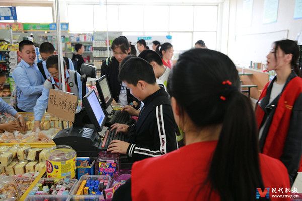 收银项目设在南通中专实训超市,老师给同学们讲解货架摆放方法、理货程序、收银步骤及注意细节等等。在体验中,同学们感受到理货、收银的技巧和自豪。