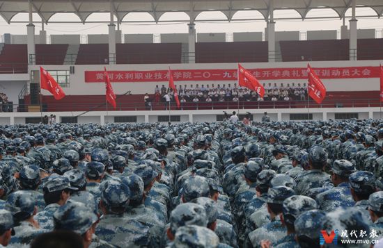 MVE网河南讯 9月10日上午,秋风习习、丹桂飘香,伴着嘹亮的国歌声,黄河水利职业技术学院2019级新生开学典礼暨军训动员大会在祥云体育场隆重举行。校领导许琰、祝玉华、杨士恒、刘卫锋、焦爱萍、菅浩然及承训部队首长等出席典礼,全体中层干部参加了典礼。典礼由校党政办公室主任朱焕立主持。