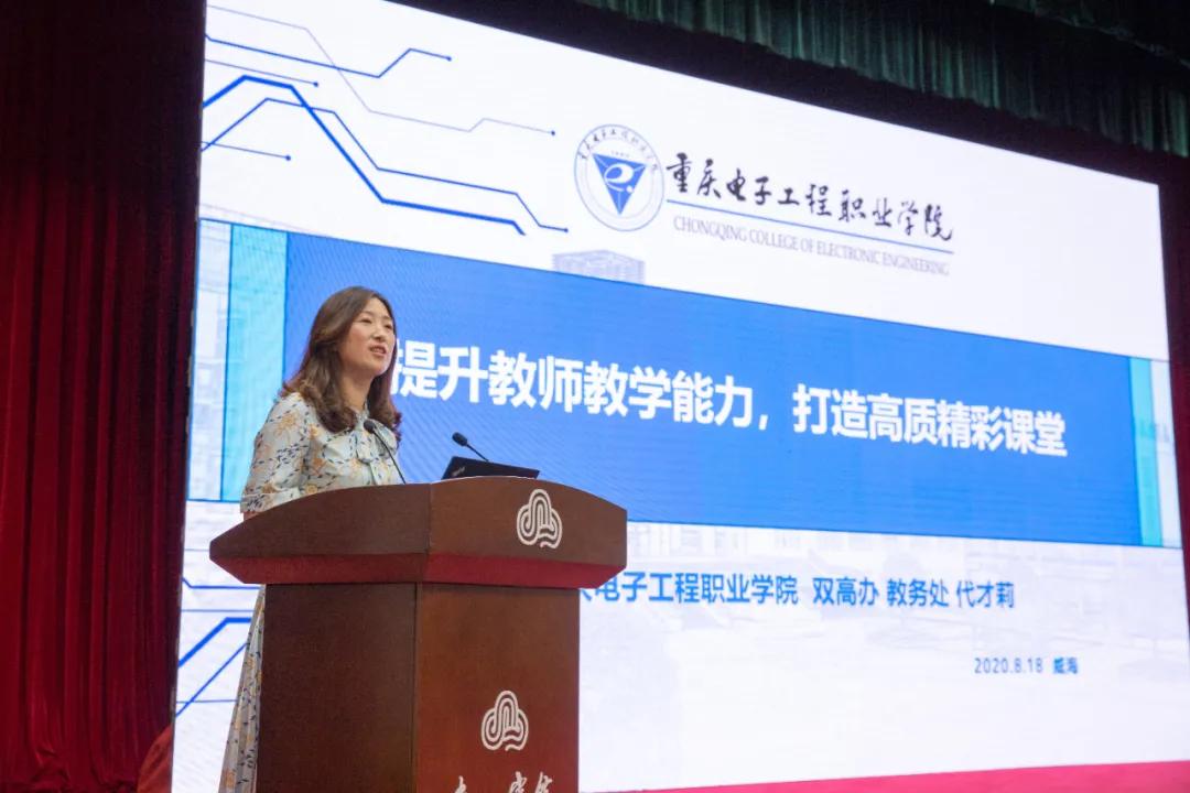 哈尔滨职业技术学院副校长孙百鸣、重庆电子工程职业学院双高办常务副主任代才莉、三盟科技智慧教学解决方案总监李丹宏分别做了《高职院校“组合创新、多元共享”机制的探索与实践》《提升教师教学能力,打造高质精彩课堂》《基于教学全流程的数据采集及教学大数据应用分析》的报告。威海职业学院院长李耀华主持该阶段会议。