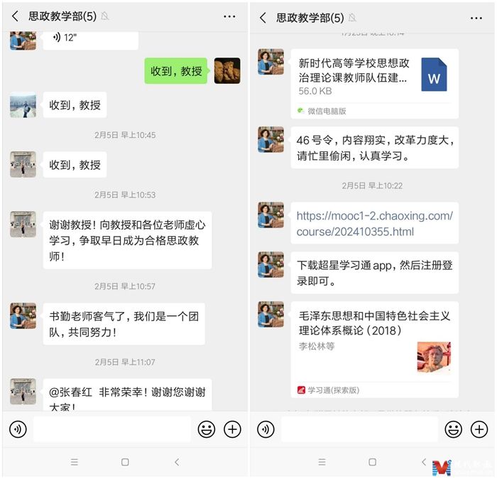 图为指挥部通过微信群交流做好防控期间教学、思政、心理疏导等工作