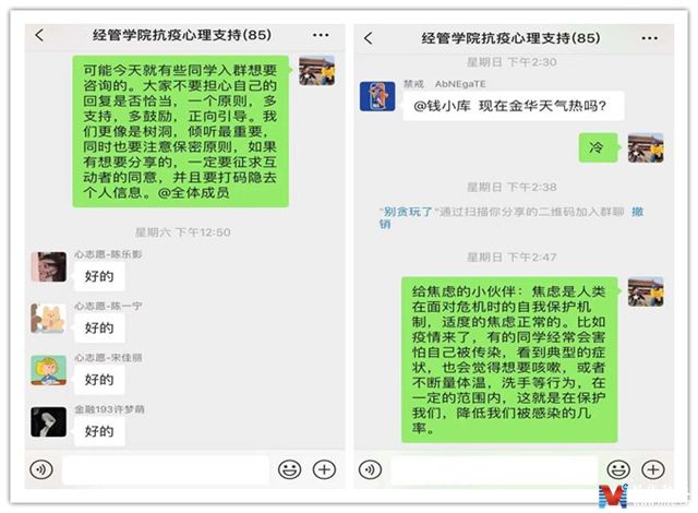 而各二级学院也纷纷出招,结合实际情况落实心理援助——如经济管理学院推出在线心理辅导小组,加强心理辅导员、班主任、寝室长三级心理预防机制的构建,专门整理了相关危机干预和心理辅导技术,推送至班主任和心理志愿者群,提升心理工作队伍的专业性和实操能力,为受疫情困扰的校内外师生提供QQ、微信在线心理援助;建筑工程学院组建学业辅导群,建立线上学习群、提供视频在线辅导、分享网络学习资源、举办线上答疑,让任课教师提前做好线上课程直播的学习与演练,参照课表与不同班级的同学做好线上沟通,化身网络主播进行授课;医学院则是成立“学院领导-专业党支部-学工办-班主任”四级联动机制的关注贫困生工作小组,细致摸排是否有因为疫情导致临时性经济特别困难而亟需资助的学生,并在征求资助对象意愿的基础上,实行“一对一”帮扶,让资助对象深切感受到学校的关怀与帮助。
