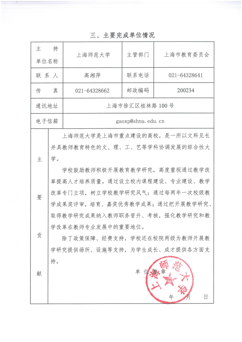 上海师范大学丨国家级教学成果奖(一等奖)申请书分享