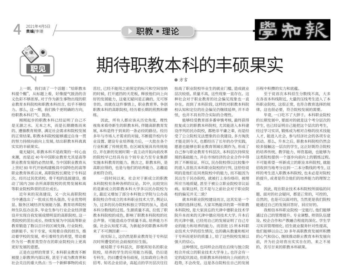 因此,所有人都应该从历史角度、理性视角来看待新生的职教本科。伴随高职教育发展,本科是终于到来的一条必经的路径。经历多年与市场人才需求的对接,不断提升校内专业设置、建设专业培养能力后,一大批在各个行业积累了传统优势、在区域发展具有传统地位、并在新的发展时期一直主动开拓向前改革的院校早已经具有在个别专业乃至专业集群实施本科教育的能力。换言之,职教本科,是高职应得的,也是与他们的培养能力、志趣追求相符合的。