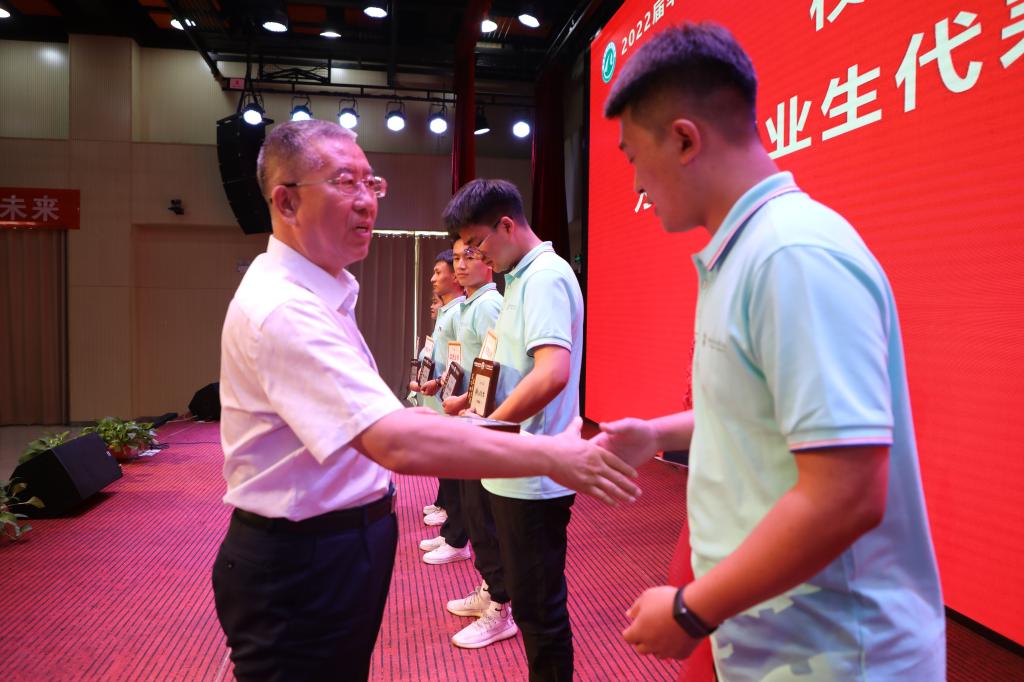 他对毕业生寄予殷切希望。希望同学们永葆家国情怀,做坚定的爱国者。希望大家厚植爱国主义情怀,将个人命运与国家民族命运紧密联系起来,在为国家、民族、人民的奋斗中实现自己的人生价值,书写精彩人生,在忠诚担当中展现个人作为,用昂扬向上的行动彰显爱国情、强国志、报国行。希望同学们修炼人生格局,做理性的选择者。希望大家进入社会以后能够不断修炼格局、坚定自我认知,发现内心热爱,有能力选择适合自己、能够发挥自己特长的发展领域。学校也愿意为大家搭建终身学习和交流的桥梁,永远做同学们坚强的后盾。希望同学们永怀励志之情,做不懈的奋斗者。希望大家以实现中华民族伟大复兴为己任,勇做走在时代前列的奋进者、开拓者、奉献者,在青春的赛道上奋力跑出最好成绩。同学们要坚定“不唯学历凭能力”“行行出状元”的自信,用丰富的知识、过硬的本领、勤劳的双手和扎实的行动,创造自己不凡的未来。希望同学们永存求真之心,做明理的学习者。希望大家在未来岗位上能有一颗求真之心,虚心向师傅请教、向同事学习,永远保持“人间清醒”,拒绝“终点线”心态,立足岗位,勤学苦练,终身学习,永远进步。希望同学们永远知行合一,做勇敢的实干者。愿大家在青春的洪流中昂扬奋进,努力活出属于自己的“限量版人生”!以实际行动向全社会诠释职教人的“前途广阔、大有可为”,谱写事业的成功之歌。