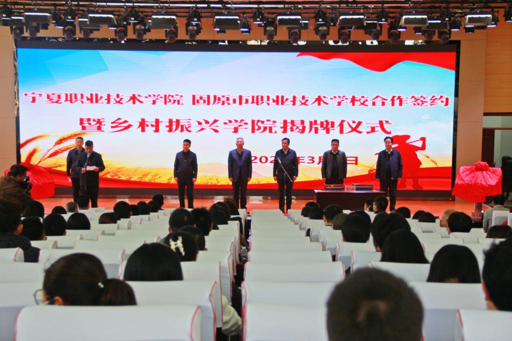 宁夏新闻网讯(记者 胡俊 实习生 杨玉仙)为积极发挥“双高校”在服务国家乡村振兴战略中的引领作用,3月9日,宁夏职业技术学院首家乡村振兴学院签约暨揭牌仪式在固原市职业技术学校举行;3月10日,与西吉县职业技术学校打造的乡村振兴学院分院揭牌。两所新学院将成为固原乡村事业发展的强劲引擎,揭开了学校服务国家乡村振兴战略的新篇章。