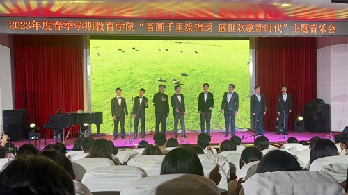 此次音乐会共分为上下两个篇章。音乐会在《盛世国乐》的鼓、筝齐奏声中拉开序幕,以西洋乐与民乐合奏、钢琴四手联弹、钢琴六手联弹、男女小合唱、混声大合唱、独唱、器乐独奏、服装秀等多种表演形式,为学校师生奉献了一场音乐视觉盛宴。节目《洪湖岸边是我家》《爱永在》《有我》穿越时空、跨越山河,饱含对祖国的热爱;《春花秋月何时了》《青玉案·元夕》传唱和诵读中华优秀传统文化的深厚文化内涵;《花儿为什么这样红》《哈尔的移动城堡》《玛依拉变奏曲》《爱的致意》《always smaller》悠扬婉转、清澈嘹亮,充满了世界情怀;《青春舞曲 库斯科邮车》《风·潮盛典》波澜壮阔、青春自信,引发了深切共鸣。在教师张艺林的指挥下,音乐教育专业全体学生共唱《在灿烂的阳光下》,以新时代青年的铮铮誓言,彰显赓续奋斗的青春力量。音乐会最后,一首男女生四重唱《再一次出发》在对祖国的赞美和新时代的讴歌中激发了师生们的凝聚力、向心力和奋斗力。整场音乐会气氛昂扬向上,现场高潮迭起掌声不断。