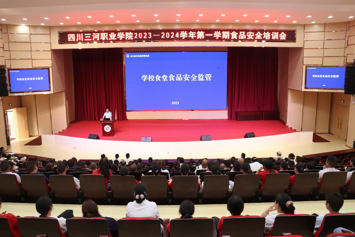 为提高学校食堂管理、从业人员食品安全政策法规素养和能力水平。近日,学校邀请了合江县市场监督管理局餐饮股副股长刘达权到校,作食品安全培训。学校分管后勤副院长苏彬、后勤处处长徐林及食堂超市管理员、食品安全员、从业人员等230余人在学术报告厅参加了培训。培训由后勤处副处长王杰主持。