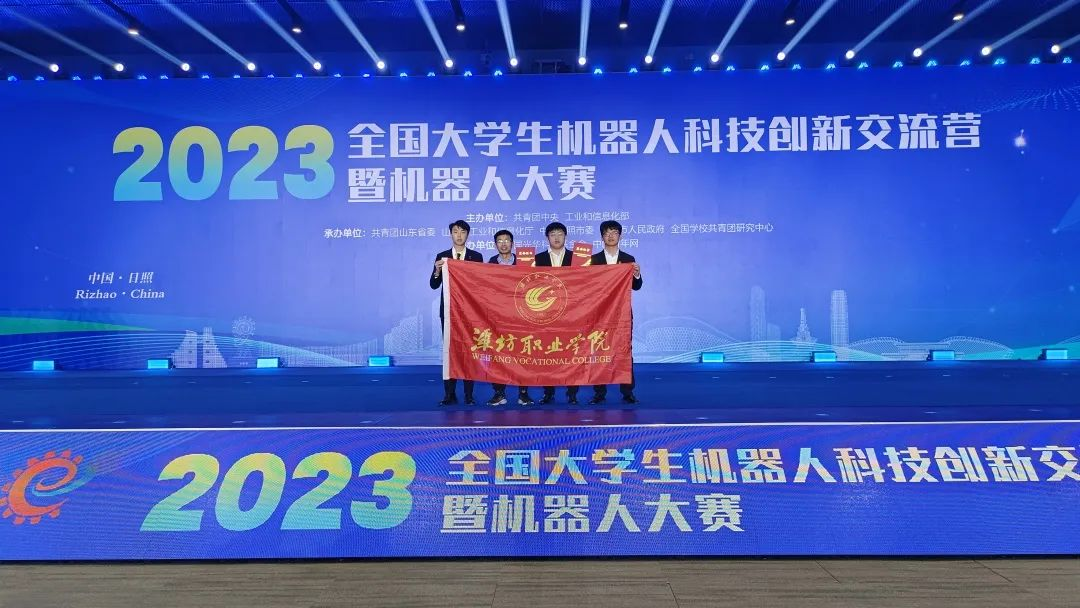 MVE网山东讯(通讯员:赵淑暖) 12月17日至19日,由共青团中央、工业和信息化部共同主办的2023年全国大学生机器人科技创新交流营暨机器人大赛终审决赛在山东省日照市举办。潍坊职业学院机电工程学院双枪灵动簇绒机器人项目荣获一等奖。