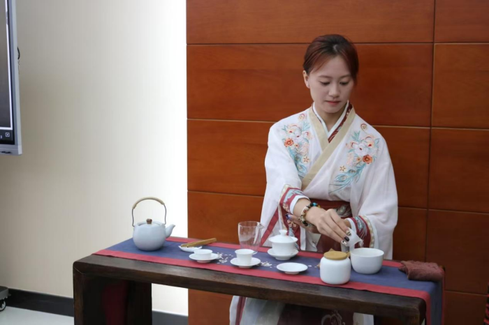 活动中,学校教师张文超介绍了中秋节的来历和习俗,展示“东职专属月饼”,为大家深入解读中秋文化的历史渊源与意义。阿尔梅季耶夫斯克国立技术大学汉语培训中心教师Kamilla Maratovna 和Adelina Airatovna 表达了对参会人员的节日祝福,并介绍了鞑靼斯坦共和国的传统美食恰克恰克的制作方法。两校学生分别展示了诗歌吟诵、茶艺表演、诗词朗诵和鞑靼族舞蹈等节目。