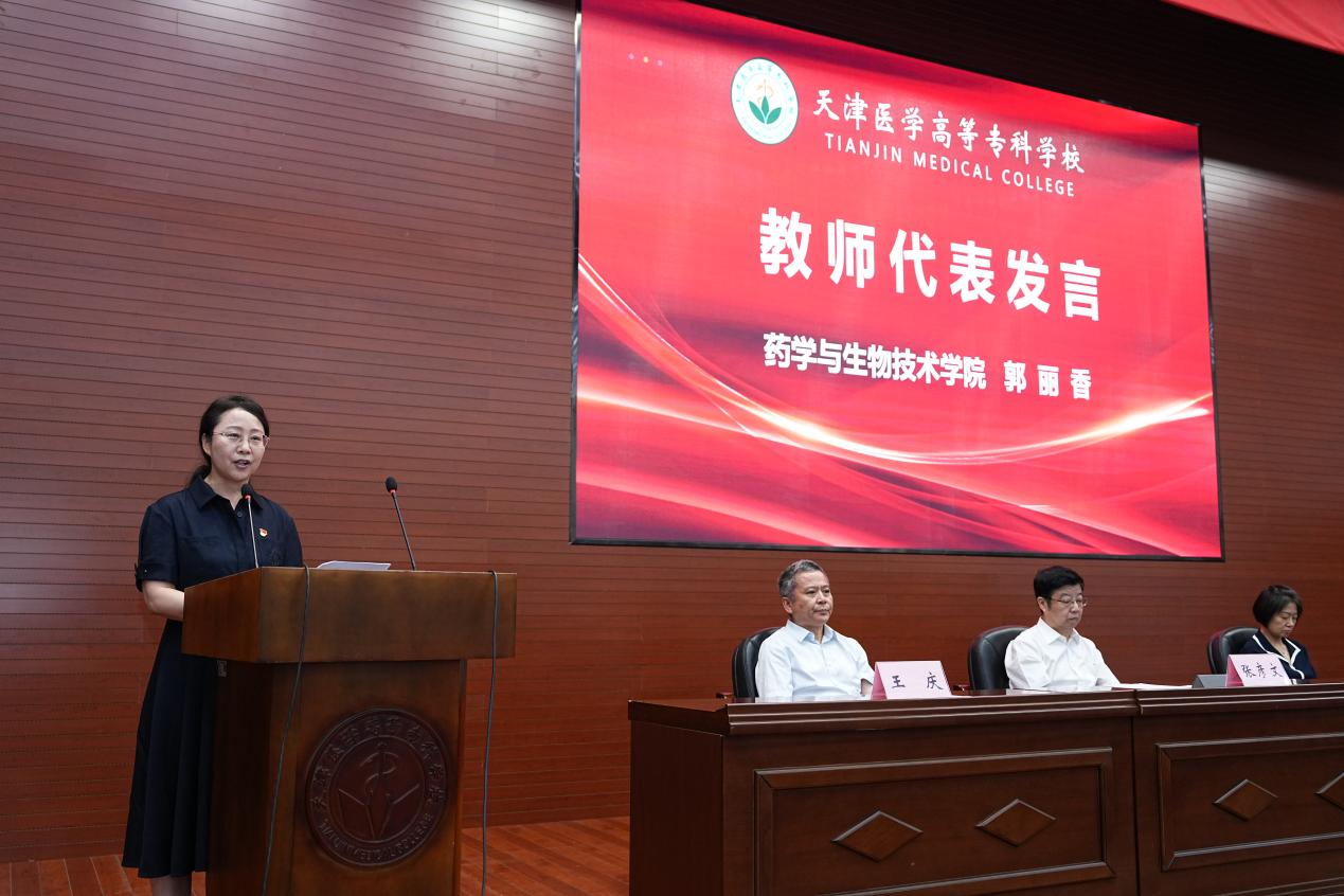 药学与生物技术学院副院长郭丽香作为教师代表发言。她深情点赞毕业生们用行动证明“职业教育成就精彩人生”,并对毕业生们送上了最诚挚的祝福。