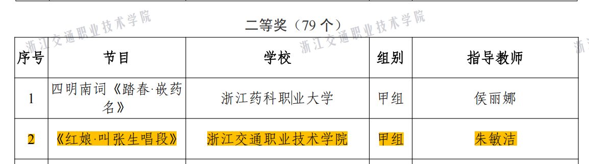 MVE网浙江讯(通讯员:祝登峰) 近日,浙江省大学生艺术节戏剧类评选结果正式揭晓,浙江交通职业技术学院人文学院教师指导的两部作品脱颖而出,双双斩获二等奖,彰显了学校美育教育的扎实成效与学子们的艺术风采。其中,由朱敏洁老师指导、运输管理学院张馨日同学演绎的戏曲选段《红娘·叫张生唱段》,以及祝登峰老师指导的话剧《不负金石,不负卿》,以鲜明的主题内涵、精湛的演绎水准赢得评委的认可。