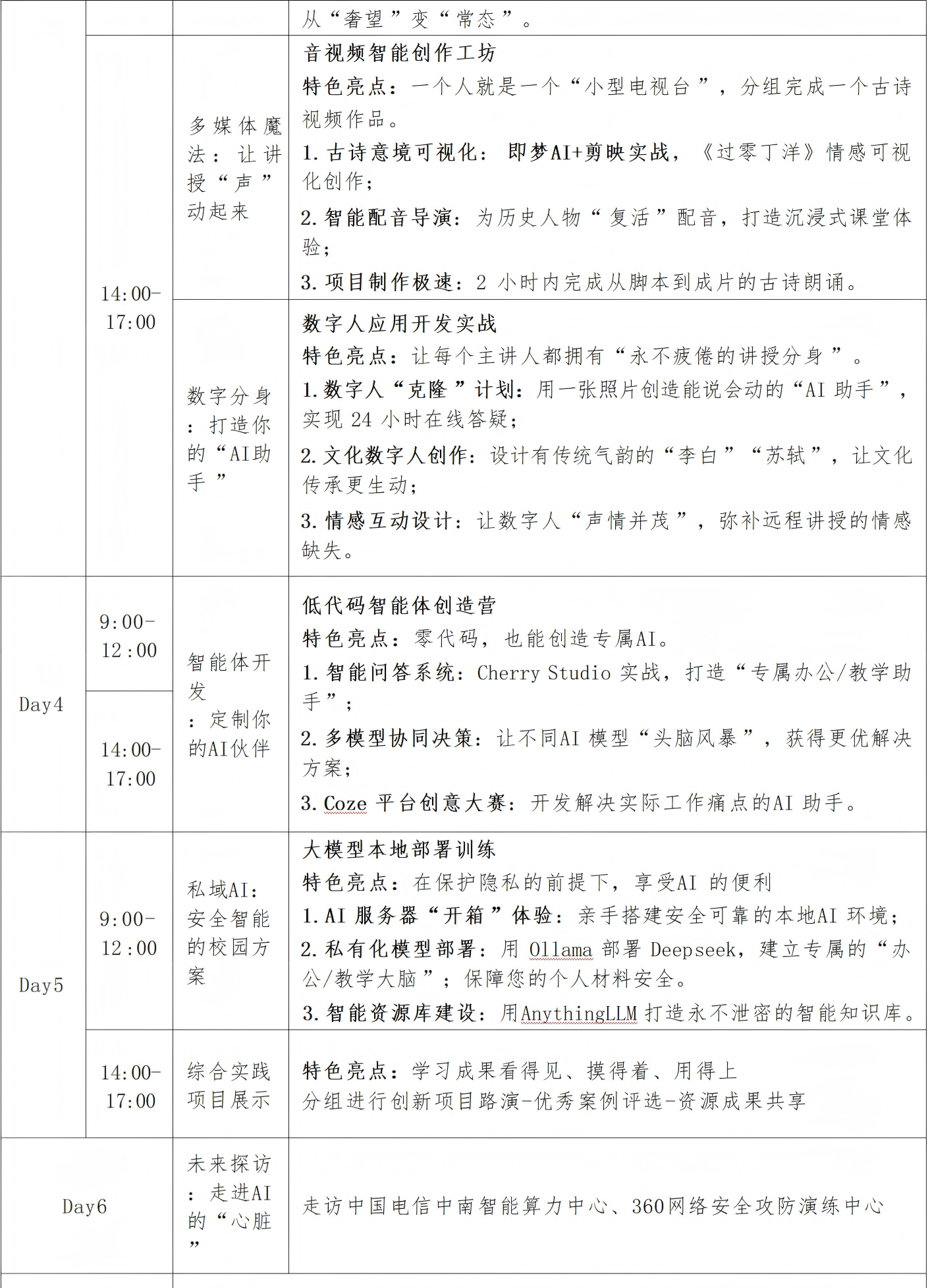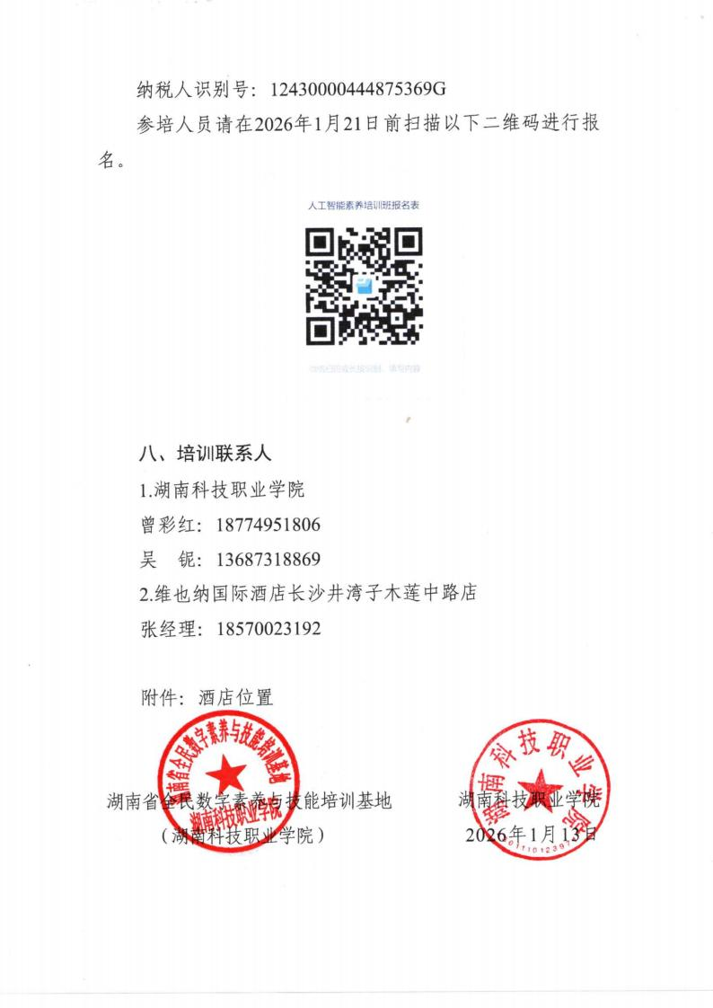 为深入贯彻落实《提升全民数字素养与技能行动纲要》 《教育强国建设规划纲要(2024-2035年)》《关于加快推进教育数字化的意见》《国务院关于深入实施“人工智能+”行动的意见》等文件精神,普及人工智能基础知识,提升全民人工智能素养与技能,助力数字中国建设,湖南省全民数字素养与技能培训基地(湖南科技职业学院)联合多单位共同举办人工智能素养与技能培训班。培训内容聚焦培养以人工智能思维为核心的人工智能素养与技能, 采用模块式、项目化的理实一体教学模式,边学边练,简单易学,上手快,能满足不同群体对人工智能素养与技能的学习需求。现将有关事宜通知如下: