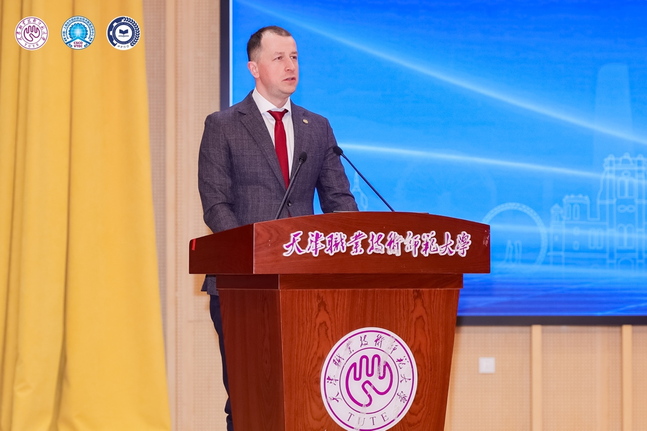 科热夫尼科夫·谢尔盖·米哈伊洛维奇在致辞中表示,俄罗斯国家职业教育发展研究院高度重视职业教育国际交流合作,此次专程来津,正是为了和上合职教中心、天津职业技术师范大学进一步深化合作关系,开展务实合作,在平台建设、人才培养、科学研究等方面形成合力,打造更多、更优的职业教育成果为“中俄教育年”的高质量举办助力。并希望以此次研讨会为契机,持续推动中俄职业教育迈向更高层次、更深程度。