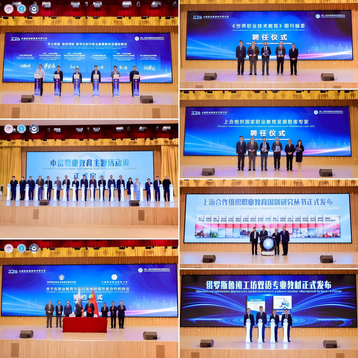 成果发布环节亮点纷呈。“中俄职业教育主题活动周”正式启幕,在“中俄教育年”开启职业教育交流合作新篇章。天津职业技术师范大学和俄罗斯国家职业教育发展研究院正式签署《关于在职业教育与培训发展领域开展合作的协议》,为中俄务实合作注入动力。科热夫尼科夫·谢尔盖·米哈伊洛维奇、谢尔古宁·亚历山大·安纳托利耶维奇、雷因哈特·罗曼·奥特玛罗维奇受聘为《世界职业技术教育》(World Vocational and Technical Education)国际期刊编委和上合组织国家职业教育发展智库专家,苏哈诺娃·奥莉加·尼姑拉耶夫娜受聘为上合组织国家职业教育发展智库专家。此外,上合职教中心系列学术成果重磅发布,包括“上海合作组织职业教育国别研究丛书”“俄罗斯鲁班工坊双语专业教材”“匠心筑基·智技领航 数字化时代职业教育新形态国际教材(新能源汽车系列、建筑系列)”等,充分展示了上合职教中心的务实成效。
