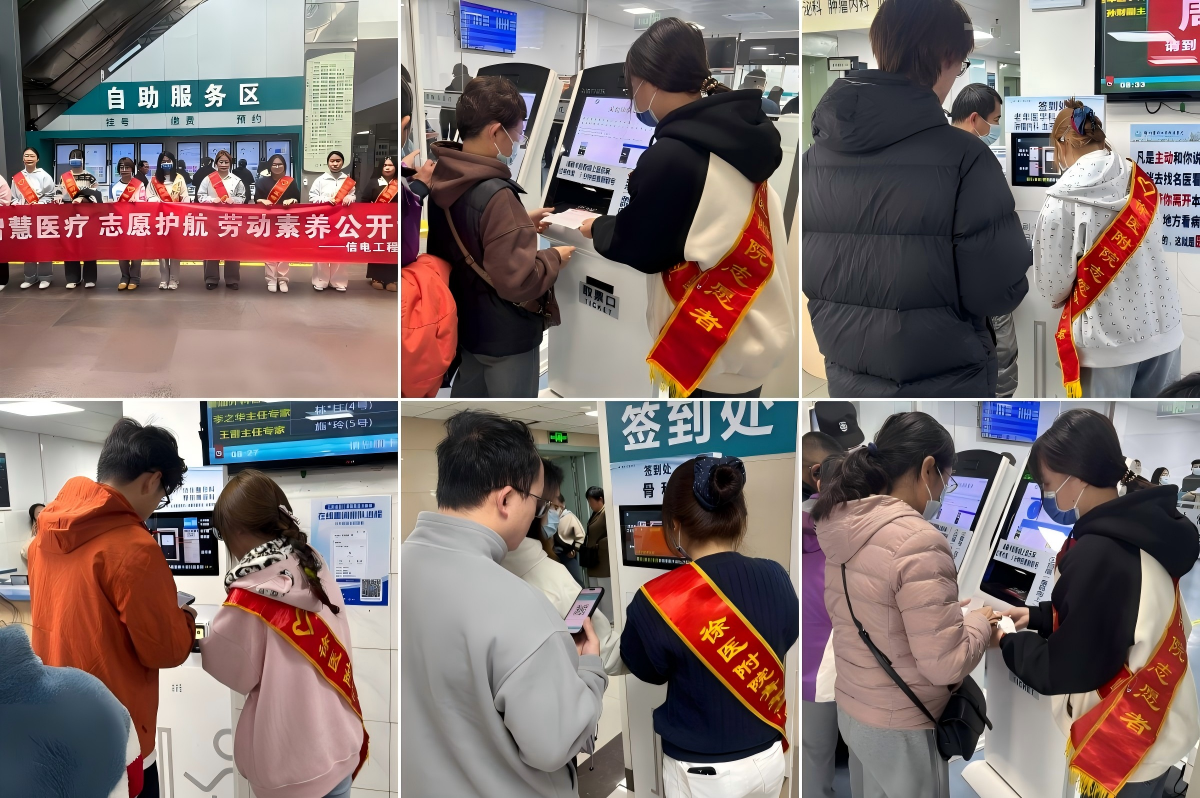 3月29日,志愿者们走进徐州医科大学附属医院,开展“智慧医疗,志愿护航”服务活动暨劳动素养公开课。在门诊大厅和自助服务区,他们手把手教中老年患者操作自助打印机,协助预约挂号、打印报告,让就医流程多了一份顺畅与温度。