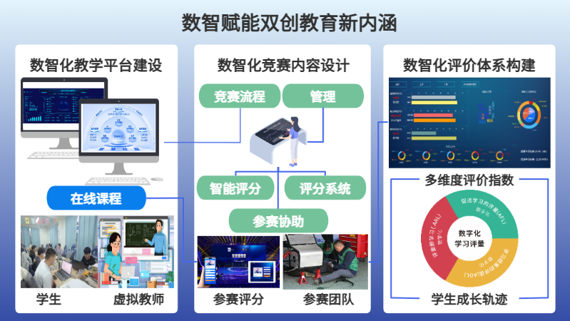 学院以“数智赋能”为核心,从平台建设、竞赛设计到评价体系多维发力,系统构建双创教育新生态(图3)。