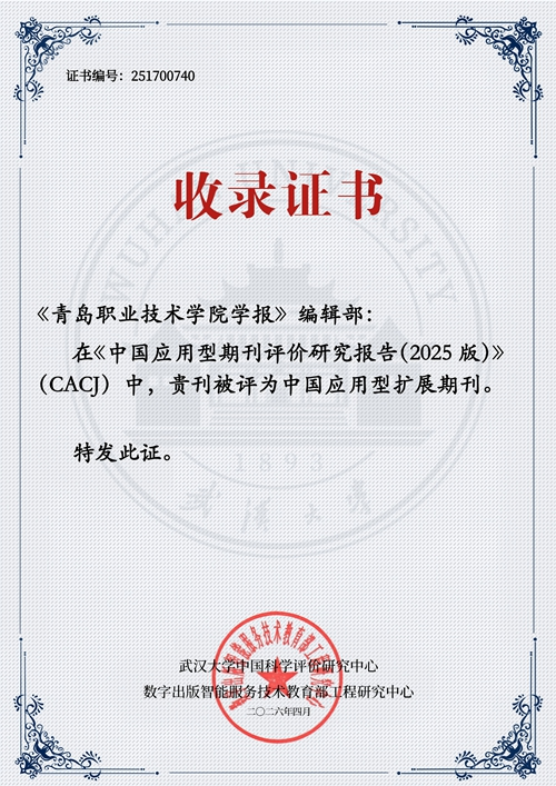 近日,武汉大学中国科学评价研究中心、数字出版智能服务技术教育部工程研究中心联合研制的《中国应用型期刊评价研究报告(2025版)》正式发布。经过严格遴选与综合评价,《青岛职业技术学院学报》成功入选CACJ中国应用型核心(扩展)期刊。