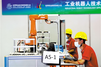 工业机器人赛项比赛现场。本报记者 陈欣然 摄