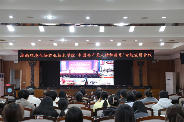 近日,由教育部思想政治工作司指导,中共湖南省委教育工委、湖南省教育厅主办,长沙理工大学承办的全国高校“中国共产党人精神谱系”湖南省示范宣讲活动在长沙理工大学云塘校区举行。湖南环境生物职业技术学院作为分会场,组织近百名师生同步观看宣讲直播,校党委副书记周凌云、宣传统战部部长李美会出席。